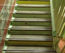 Способ монтажа: алюминиевый порожек без вставки крепится в проем между двумя напольными покрытиями или на ступени при помощи саморезов. Затем прорезиненную ПВХ вставку нужно нагреть строительным или обычным феном, либо подержать в горячей воде, чтобы материал стал мягче и легче вошел в паз профиля.