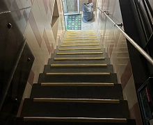 Способ монтажа: алюминиевый порожек без вставки крепится на ступени при помощи саморезов (идут в комплекте). Затем прорезиненную ПВХ вставку нужно нагреть строительным или обычным феном, либо подержать в горячей воде, чтобы материал стал мягче и легче вошел в паз профиля.